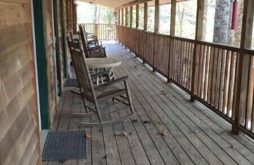 Plumtree Mountain Studio #3 is located in Plumtree Campground and Retreat and is part of the lodge on top of the property. The Studio shares a large covered porch with rocking chairs with three other studios. Enjoy the remote and relaxing atmosphere on property that includes hiking/mountain biking trails, a pavilion with a grill and fire pit, a playground, a pond, and a sliding rock waterfall.