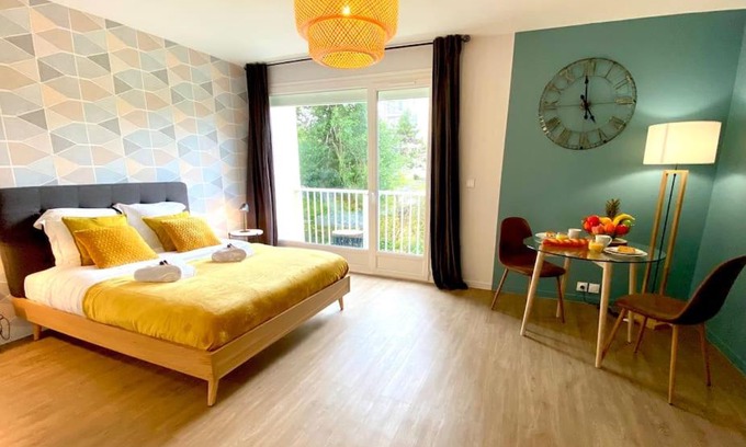 Pluton - SILS offers accommodations in Caen, 1.1 miles from Ornano Stadium and 1.6 miles from Festyland. This property offers access to a balcony and free private parking. Racecourse of Caen is 2.7 miles away and Caen Station is 3 miles from the apartment. With free Wifi, this 1-bedroom apartment offers a flat-screen TV, a washing machine, and a fully equipped kitchen with a dishwasher and oven. Towels and bed linen are offered in the apartment. The accommodation is non-smoking. Memorial of Caen is 2.1 miles from the apartment, while Botanical Garden of Caen is 2.1 miles from the property. Caen–Carpiquet Airport is 3.7 miles away.