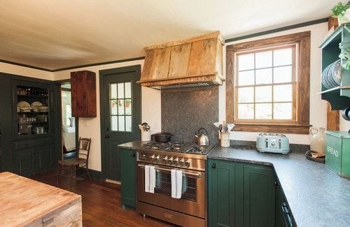 The farmhouse has been lovingly restored by Full Circle Homes, offering a perfect blend of historic charm and modern convenience. It features two kitchens, including a cozy in-law kitchen, two bathrooms, and five spacious bedrooms—ideal for hosting family and friends. Picture exchanging vows in the lush fields or gathering for an intimate reception in the elegantly designed dining room. For those looking to extend their wedding festivities, you have the option to book the entire house or combine it with the nearby Black Walnut house, creating the ultimate wedding weekend experience.