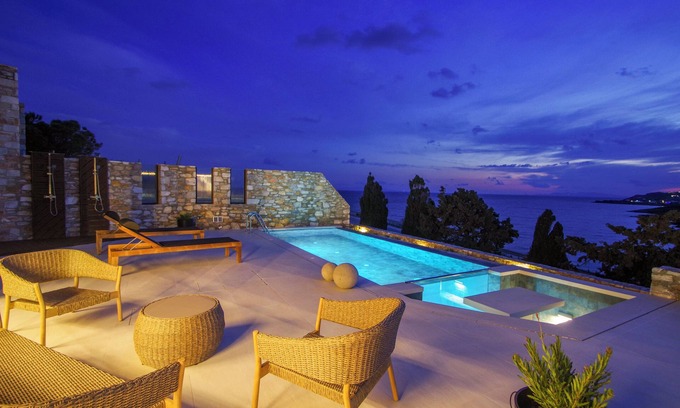 Best-rates for the Pnoe Villas Syros starts from $1,786 per night with includes Private Pool, Accessibility, Business Services, Bar, Entertainment, Child Friendly, Wellness Facilities, Internet, Air Conditioner, Ocean View, Balcony/Terrace, Bedding/Linens, Restaurant, Guest Services, Laundry, Designated Smoking Area, View, Kitchen, Parking, Pool with all other amenities. Perfect for Weddings is committed to ensuring every guest experiences a comfortable and extraordinary stay, whether planning a romantic getaway, a honeymoon, a pet-friendly stay, or celebrating with the entire wedding party.