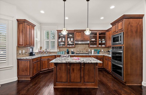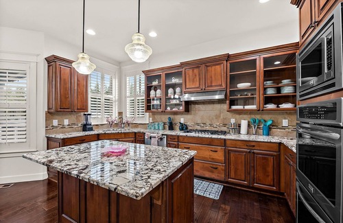 Two Story home w/ Formal dining, living room, study (5th BR on main) & Great Room w/Gourmet Kitchen. Double-Ovens w/5piece Gas Range Top, double wide fridge, pantry & Island to separate from Large Living space w/Gas Fireplace. Master Suite w/ fireplace and W/5piece bath w/Tile Shower&soaking tub. 3 additional Bedrooms up w/ utility room & full bath. Backs up to Greenbelt. Large Covered Patio and Outdoor Fireplace. Near McCormick Golf course.
