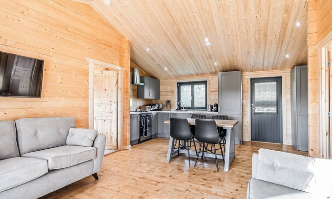 New for 2023 are these stunning, large centre lounge cabins with two en suite bedrooms, one with a king-size bed and shower room and the other a super king-size (make up to a twin on request) bath and overhead shower room. Spacious open plan lounge dining area with a well-equipped kitchen including dishwasher. The perfect place to relax and enjoy the views from the outdoor seating area.. Time to relax, explore and have fun. Kesters Country Lodges is a new addition to Hoseasons for 2023 and a new venture for us. It is a hidden gem which we felt was too nice not to share, with all the benefits of a stunning secluded rural location combined with a multitude of adventures on your doorstep. We are a small peaceful/tranquil site with six brand new spacious, warm and comfortable wooden lodges with quality furnishings and appliances.