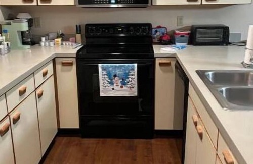 Our home has a full kitchen including microwave and mini waffle maker..The sunken living room has a fireplace and leads to an outdoor private patio. Upstairs are 2 bedrooms, each with Roku TV, and 2 full bathrooms. Enjoy a jetted tub with a waterfall faucet in a modern spa room for ultimate relaxation.