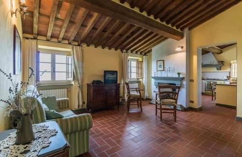 Characteristic, Tuscan country house divided into three apartments, located among the hills north of Lucca. Stunning views, large patio and private swimmingpool. Perfect for a family vacation. WiFi.