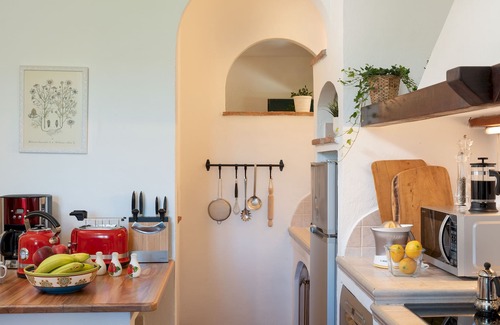 Podere Capanne is located within the Tenuta Mocajo, an old farm estate in the Val di Cecina and a true oasis of tranquillity and peace set in the green hills of Tuscany but not far from the sea. Once past the gate you enter the estate and your frenetic everyday life will become just a memory because you will be immediately immersed in the peace and nature of this place. Five kilometres past the entrance gate, in the centre of Tenuta Mocajo, is the 17th century manor house that has been elegantly restored and transformed into a hotel with restaurant. Continuing along another four kilometres of ecological tarmac road through the woods you come to Podere Capanne, one of the farmhouses that once belonged to workers living on the estate. Today the property has been renovated to provide it with modern comforts, while maintaining the antique flavour of rural homes. The terracotta floors, the wood and stone finishes, the arched openings and the built-in kitchen as well as the furnishings of simple and comfortable elegance are typical elements that are well suited to the rural context in which the property is located . Podere Capanne is the ideal place for those who want to experience a stay in absolute tranquillity, surrounded by nature but still close to all services, to the sea and to the main towns of Tuscany.