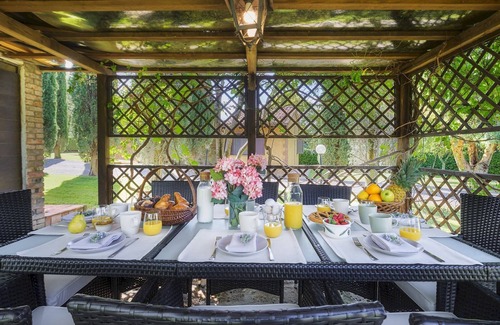 Please notice that photos are taken in spring, therefore flower blossoming, and the colours of the gardens' grass could be different at the moment of your arrival at the villa.