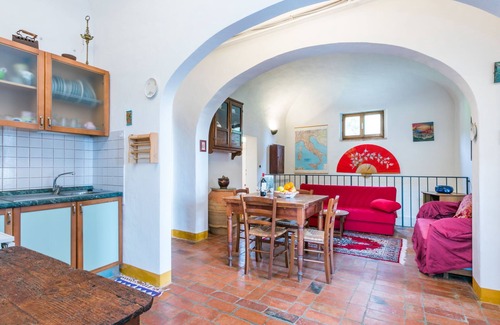 6-room house 195 m2 on 2 levels. Simple and rustic furnishings: living/dining room with dining table, satellite TV and hi-fi system. Exit to the garden. 1 room with 1 french bed (160 cm). 1 room with 3 beds (80 cm). Small, open kitchen (2 hot plates, oven, freezer). Shower/WC. Upper floor: living/sleeping room with 1 double sofabed and dining table. 1 room with 1 french bed (160 cm). 1 room with 1 french bed (160 cm). Kitchen (2 hot plates, oven, 4 gas rings, freezer, electric coffee machine) with open-hearth fireplace and dining table. Bath/WC. Oil heating (extra). Terrace furniture, deck chairs, covered balcony. Facilities: washing machine, iron, baby cot for up to 2 year olds. Internet (WiFi, free). Parking at the house. Maximum 2 pets/ dogs allowed. When there are less than the maximum number of guests staying at the property, one floor will not be available for use. IT052033C22DCUZ5HQ