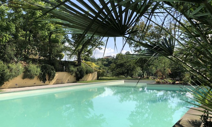 Private and exclusive Swimming Pool (size sm 12 × 5), 1 Outdoor shower, Private Garden, Pergola with dining area for 16 pax, Private Parking for 6 cars, Panoramic views. Outside the pergola extends to a shaded open living area. Here the armchairs and a large dining table offer a wonderful relaxation, leisurely breakfasts and the perfect setting for the romantic evening dinners overlooking the lovely view of Apuan Alps.