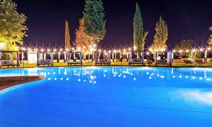 Best-rates for the Podere del Germano Reale starts from $164 per night with includes Air Conditioner, Pool, Balcony/Terrace, Fireplace/Heating, Restaurant, Bar, Guest Services, Laundry, Bedding/Linens, Internet, Parking, Designated Smoking Area, Business Services, Wellness Facilities, Toiletries, Child Friendly, Kitchen, Entertainment, Breakfast, Barbecue/Outdoor Cooking, Hot Tub with all other amenities. Perfect for Weddings is committed to ensuring every guest experiences a comfortable and extraordinary stay, whether planning a romantic getaway, a honeymoon, a pet-friendly stay, or celebrating with the entire wedding party.