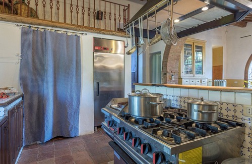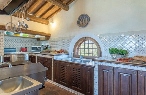 The property boasts several amenities designed to make your stay unforgettable. Accommodating up to 16 guests, Podere Pratovecchio features air-conditioned bedrooms with ensuite bathrooms, ensuring privacy and comfort for you and your loved ones. Revel in the elegance of the large living room adorned with antique fireplaces and vaulted brick ceilings, or mingle with guests by the lovely swimming pool, surrounded by lush gardens filled with olive trees and fragrant herbs. A beautifully shaded pergola lined with roses creates the perfect backdrop for intimate gatherings, while the nearby portico provides additional dining and relaxation options during your festivities.