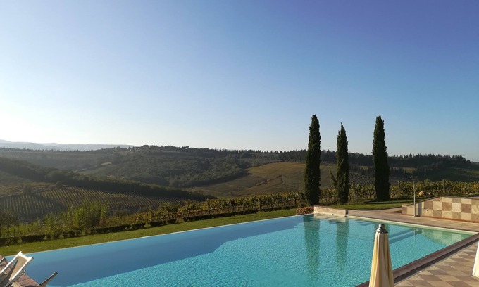- - Top Location - Villa in San Gimignano, Top View, 4 DBL En-Suite, Pool, A. C, WiFi