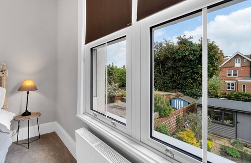This Edwardian house offers a 3 bedroom apartment on its own floor featuring a new kitchen, and fitted bathroom with underfloor heating and complimentary parking. Situated in West Worthing's Poet's district, this first floor apartment provides a residential environment near the shopping centre, seafront and train station for you to explore the South coast. Guests can make use of the wifi and smart TV, allowing them to stream their favourite shows and movies from platforms like Netflix and Amazon Prime.