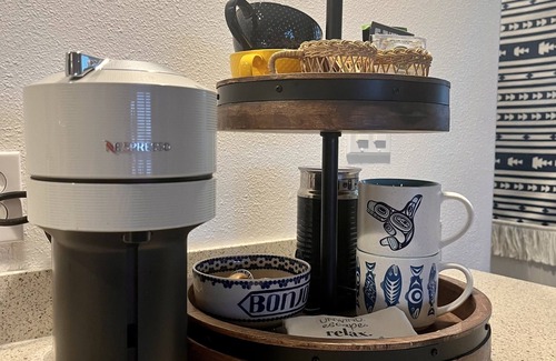 One bedroom plus great flex space. Experience some of your best sleep in the luxurious king bed. Roomy living area, small workspace with additional queen bed. Newly remodeled bathroom and kitchenette. Perfect for a short stay to explore the peninsula or head over to Seattle on the 35-minute ferry ride.