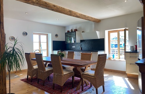 Lovingly renovated farm (place for 10-12/14 persons) in a quiet and sunny secluded location on the edge of the forest on the border between Alsace and the Vosges with great views of the pastures, forests and down into the valley to the town of Sainte-Marie-Aux-Mines (only 5 minutes by car down to the town) . Two holiday apartments invite you to linger here: La Foret: 4-6 people with terrace, garden furniture, electric barbecue and La Prairie: 6-8 people with terrace, garden furniture, electric barbecue.