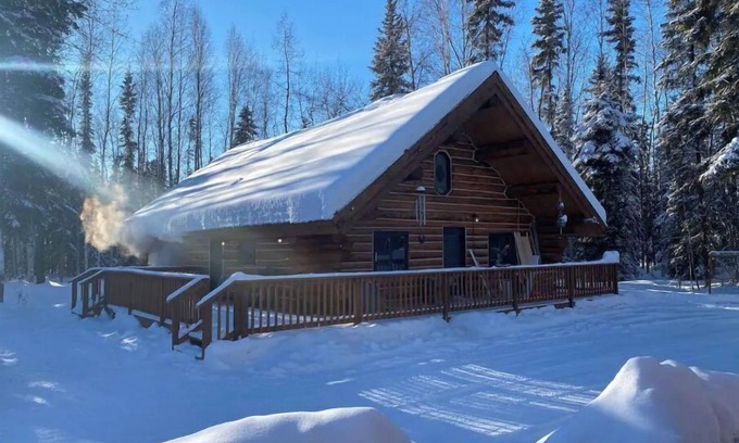 This Unique Alaskan Log Home is rustic on the outside and pure luxury on the inside. Explore Alaska from the golden heart of the state - Enjoy company around the firepit, take a dip in the hot tub while you watch the Auroras, or take a short drive to see Santa Claus! Situated in a perfect location, you'll have seclusion and privacy while still being minutes away from Chena Lake, North Pole, restaurants, and more! Whether it is winter or summer, you won't find a better place to enjoy Alaska!