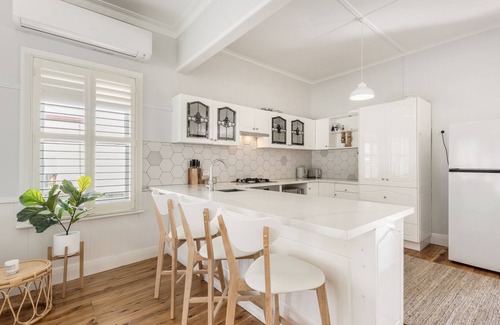 The decor and furnishings are stylish and sophisticated yet comfortable and welcoming, with a Hamptons feel. This stunning cottage is equipped with modern conveniences, open plan living and dining, reverse cycle heating and cooling, ceiling fans and offers off street secure parking.