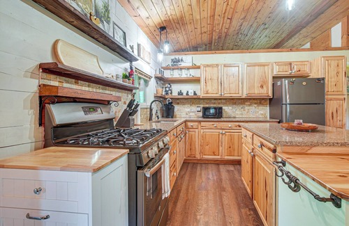 Tucked away on wooded land near Dillon, this vacation rental offers the perfect blend of rustic charm and modern comfort. Cast a line in the pond, enjoy the covered porch, or gather by the fire. Families will love the playhouse for kids, while couples can unwind in the peaceful setting. With trails, wineries, and restaurants close by, this 2-bed, 1-bath log cabin is your serene base for adventure or rest.
