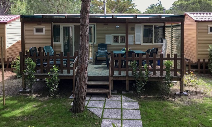 Child friendly resort "Campeggio del Forte", surrounded by trees. In the resort 2 km from the centre of Marina di Bibbona, 9 km from the centre of Bibbona, 10 km from the centre of Cecina, 500 m from the sea. For shared use: park 8 ha (fenced), swimming pool (25 x 12 m, seasonal availability: 01.May. - 28.Sep. pool opening hours: 10:00-18:00). Children's pool, outdoor shower, table tennis, basketball, boccia, children's playground. In the complex: reception, restaurant, bar, lounge, WiFi, playroom, shopping facilities, washing machine (extra), tumble dryer (extra), bicycle rental. Breakfast and half board possible (extra). Parking on the premises. E-charging station. 10 minute walk to the centre, bus stop 10 m, railway station "1", sandy beach "Marina di Bibbona" 500 m. Nearby attractions: Bolgheri 10 km, Livorno 45 km, Pisa 70 km, Lucca 90 km, Dog Beach Hundestrand Bau Beach 2 km. Groups of teenagers on request only. WiFi only in common areas such as the bar and restaurant. Entertainment: 01/06 - 14.09. Pool opening times June, July, August: from 9am to 7pm. may and september: from 10 am to 6 pm.