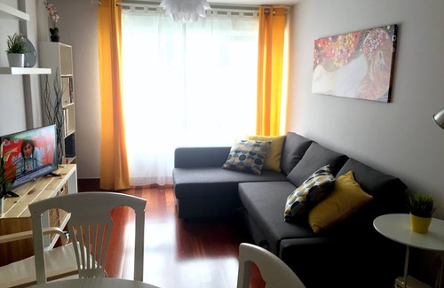 Newly furnished apartment in front of Poniente beach in Gijon. It has two bedrooms, two bathrooms, kitchen and living room.