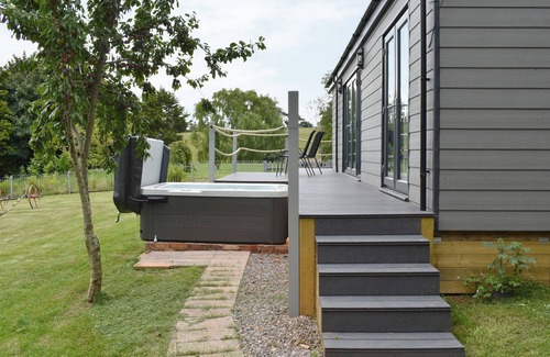 Experience a different type of holiday at this gorgeous shepherd’s hut - with its very own hot tub to relax in and a peaceful rural setting.. 3 steps to entrance.