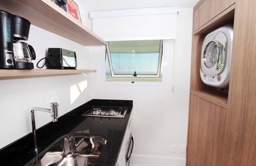 Flat completely renovated by the beach. Modern and fully equipped, perfect for spending a break, relaxing with an incredible view of the sea. It contains a bedroom with a queen size bed and television. The living room has a sofa bed, TV and is combined with the fully equipped kitchen. The bathroom is equipped with towels and a hairdryer. The building has a leisure area with a playground for small children, an open pool, gourmet space and a gym room.