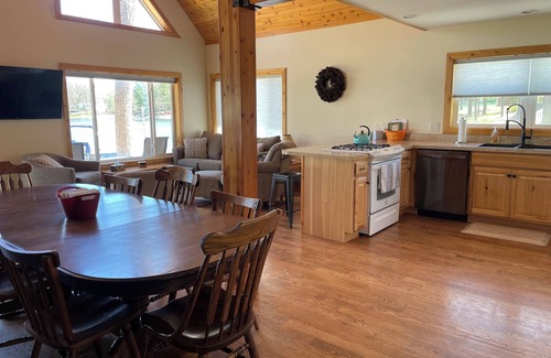 While we lovingly refer to our home up north as "The Cabin" it is far from just a cabin. Cottage on the outside, cabin on the inside, this home has it all! LAKE, ORV trails, a stunning home, and best of all you can bring your fur babies (dogs only - $50/dog). Ramp to front porch for more accessibility. Pontoon boat (10 person, 25 hp) available to rent ($450/week, to note, the pontoon seats are stained and the floor is stained/dirty at times). This unique 3 bedroom, 1.5 bath home is located on Little Island Lake and is less than 0.5 miles from the ORV trails (Sand Lake ORV Trailhead). When the lake level is normal, we have a large sandy swimming area. Additionally, our cabin is located approximately 10 minutes from Corsair Trails, for hiking and groomed cross-country skiing. Only 20 minutes from Red Hawk Golf club in East Tawas. Be sure to check out Lumberman's Monument and Largo Springs in Oscoda. Enjoy the peace and quiet of this lake front home as you sit on the deck and enjoy your morning coffee. Lake side deck also has a patio table and new Weber gas grill allowing you to enjoy nice summer evenings with family and friends. Little Island Lake is shallow with a sandy bottom bottom along the shore and island when water levels are normal. We have a large sandy beach and sand toys for kids. Rental includes kayak’s (2), paddle boards (2), and corn hole. Additionally, the house has air conditioning, a washer and dryer, dishwasher, kitchen aid stand mixer, pots, pans, plates, bowls, cups, silverware, blender, electric pancake griddle, electric skillet, measuring utensils and includes sheets and bath towels. We have a baby gate already up at the bottom of the stairs, a booster seat to strap onto a chair, a pack n’ play, and a step stool in the bathroom for kids. Max of 10 people (not including infants <1 year of age). There are plenty of sleeping options with 2 bedroom’s on the main level (2 with queen beds) and a large loft (2 queen bed’s, 4 twin bed’s, and a full size futon). There is also a queen size sleeper sofa in the living room. Our home is located approximately 15 minutes from Tawas/Lake Huron (beaches and parks) and is less than 3 hours from Detroit. Smart TV’s and WiFi included.