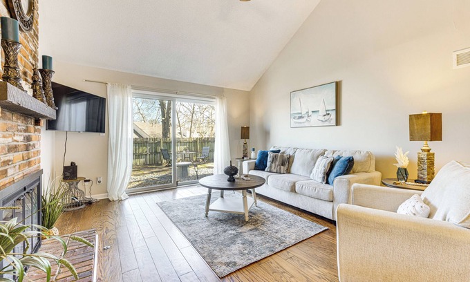 Whether you're in town for the big game, to see your favorite artist, or to explore all Kansas City offers, this bright 2-bedroom, 2-bath vacation rental is your ideal home base. Visiting in the summer? Take a dip in the The Trails community pool before teeing off at a nearby golf course! In colder months, visit iconic museums or shop locally at City Market. Fun awaits, so book this townhome today!
