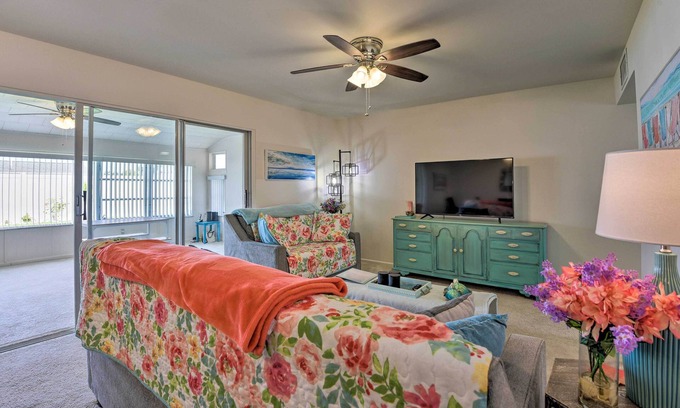 Nestled in a quiet neighborhood where exercise, community, and easy living are top priorities, this colorful Sun City Center vacation rental is ready to be your home base as you explore Florida. Spend time playing tennis and pickleball or soaking in the community hot tub. Dominate in board games, watch the Smart TV, or cook a famous family dish in the fully equipped kitchen of this 2-bedroom, 2-bathroom residence. When you head out, visit local beaches or spend a day traversing downtown Tampa.