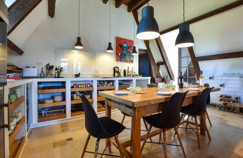 Layout: On the 1st floor: (Entrance, open kitchen(hob(induction), toaster, coffee machine, oven, dishwasher, fridge, fridge-freezer, washing machine), Living/diningroom(dining table, fireplace, seating area), bedroom(double bed(160 x 190 cm)), bedroom(double bed or 2 single beds(boxspring)), bedroom(double bed or 2 single beds(boxspring)), bathroom(shower, washbasin, toilet), bathroom(shower, washbasin, toilet))