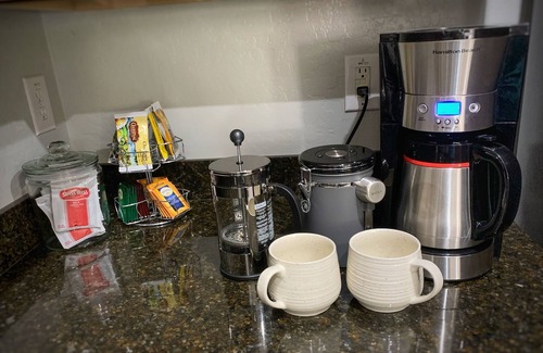 The house is newly remodeled in 2021 with our guests in mind. Updated look, open concept family-style living in the heart of the desert! Lots of extras for our guests enjoyment! Coffee bar, tea & hot cocoa too, room darkening shades, beach towels, fully stocked kitchen with pantry basics, full-length mirrors, luggage racks, fluffy towels, cosmetic mirror, child-proof locks and baby necessities, and so much more!
