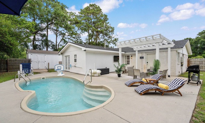 Enjoy comfort and convenience at this spacious 4BR, 3BA home, just mins from Parris Island & Downtown Beaufort. Perfect for families & groups, our home is the perfect getaway for celebrating graduations & other events, it features a fully equipped kitchen, game room, work space, home gym, & generous living space. Relax in the fenced backyard with a pool, fire pit & outdoor games.