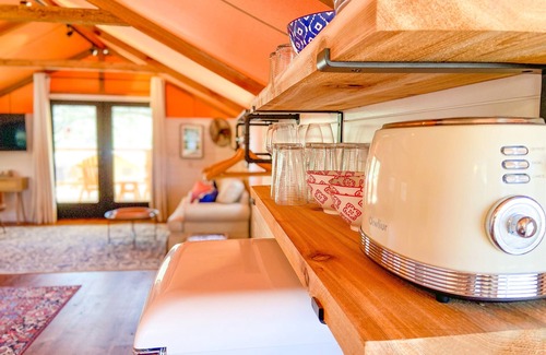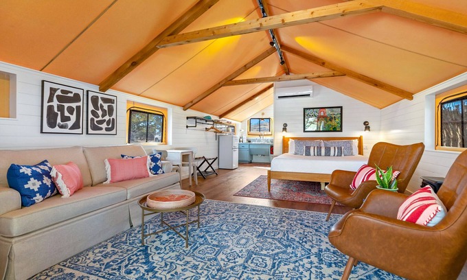 We have 4 other cabins on the property, The Rocking F Rambler (1 BR), Carmel Cabin (1 BR), Casita Juanita (1 BR Efficiency) and The Lodge at Basecamp (4 BR w/ detached bunk room). We also have 4 additional glamping tents...bring your friends and family! Thank you for considering our experience in glamping...we hope to see you soon!
