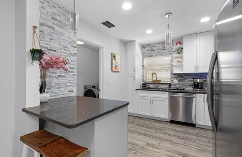 Looking for extra space? A stunning in-law suite is available to accommodate up to 4 additional guests for an extra fee. This suite offers its own private kitchen, bathroom, living room, entrance, and driveway. The suite may be occupied by other guests if not booked together with the main house. The backyard and pool are not available for suite’s guests unless booked with the main house. We are committed to providing you with a peaceful and undisturbed stay.