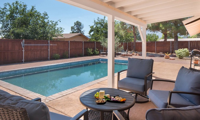 Beautifully updated home with hotub, pool, BBQ, firepit, plush furniture. Inside, gallery quality photos by your host, a professional photographer, surround you in the natural beauty of Sedona and the greater southwest.