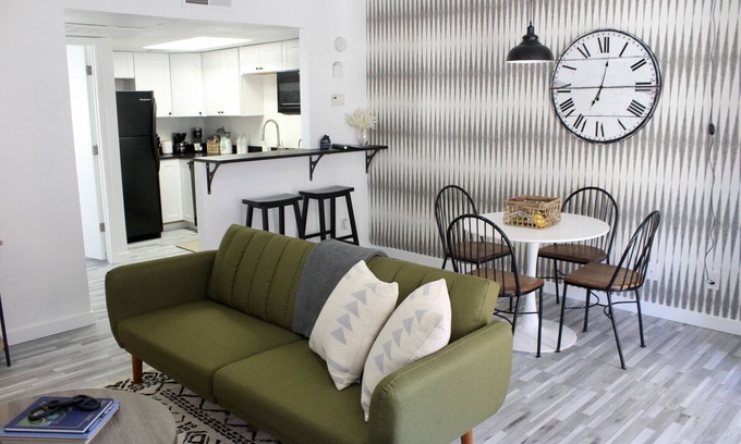 This charming 1 bedroom 1 bathroom apartment is located just two blocks from ASU's campus and Mill Ave! You are surrounded by all of the hot spots in downtown Tempe and 7 minutes from Phoenix Sky-Harbor Airport. We decorated and furnished your apartment for maximum comfort and enjoyment. It has a full kitchen equipped for making a home-cooked meal, a pull-out couch for additional guests, and a stackable washer/dryer in the unit. You’ll also have 1GB WiFi and a flat-screen TV with Netflix, Disney+, and local channels. The apartment is located on the 2nd floor and steps from the community pool/spa. The community is well-maintained and has easy parking spot access near the unit. The apartment has one covered parking spot for guests just a short distance from the apartment. We do not have neighbors above the apartment, but there are neighbors that share one wall and that are below the unit. We trust you'll love your stay and hope that you truly feel at home. Mi casa es su casa!