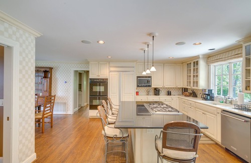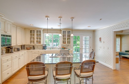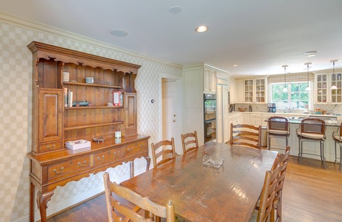 Jump into the heart of fun when you stay at this 6-bed, 5-bath vacation rental, ‘White Horse Farm,’ in Franklin. Splash into the infinity pool, cast a line into the private pond, or show off your skills in the game room. After a day of excitement, kick back in the steam room or host a BBQ on the patio. No matter what you choose to do, this home is sure to spark joy and endless fun for everyone!