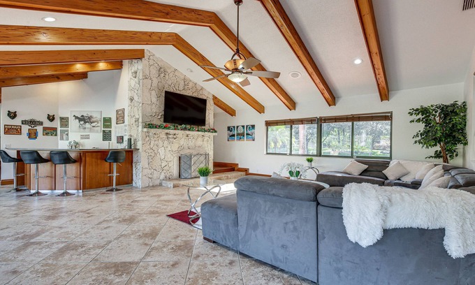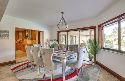 Designed to amaze, this resort-style home in Coral Springs, FL, is a 6,000-square-foot oasis. Here, your family can discover endless fun both inside and out, from the home theater furnished with leather recliners to the expansive pool and accompanying hot tub. In between moments of leisure, explore Sugar Sand Park or take a 27-mile day trip to Fort Lauderdale Beach. Wherever you spend your days, you'll love balmy evenings around the fire pit at this 6-bed, 5-bath vacation rental.