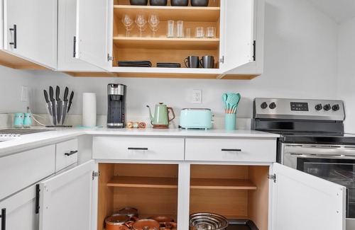 • 4 full kitchens equipped with stainless steel appliances, cookware, coffee makers, and dining essentials.