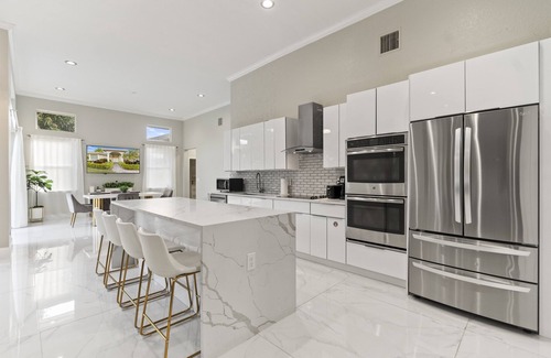 Enjoy our fresh newly updated home with a spacious open floor plan, high ceilings, and modern furnishings. The house features a heated pool and jacuzzi, outdoor dining and seating area, an oversized bathroom with a large standalone tub, and a huge master bedroom with a pool view. Located in a beautiful safe neighborhood with tree-lined streets and a huge state park just down the street!