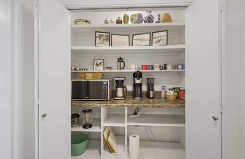 Kitchen: Fully functional kitchen with everything needed to cook large meals and a dining table with enough seating for the entire family. Pots, pans, crockpot, blender, cooking utensils, and extras you'd need to make any meal there.