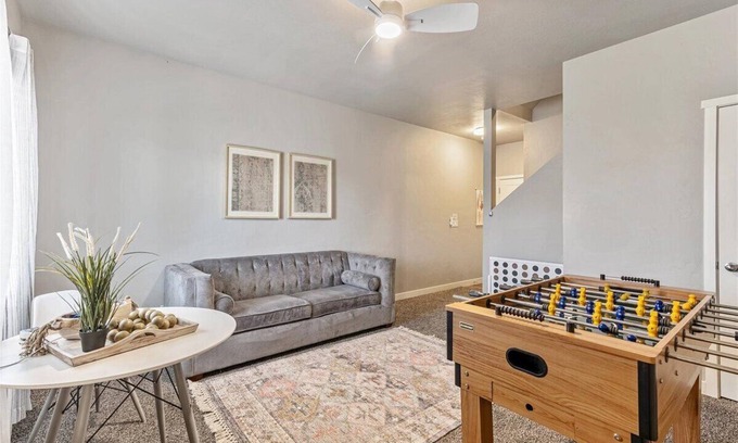 Welcome to our 3-bed, 2.5-bath haven in Vineyard, Utah! Enjoy exclusive discounts for 30+ day stays. Our home blends comfort and entertainment with a foosball table, board games, a fully equipped kitchen, complimentary coffee, and a Roku Smart TV. A seasonal community pool is available for some fun in the sun during your stay! Book now for a delightful escape!