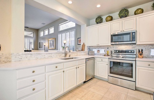 Your next sunny Arizona escape awaits at this Scottsdale vacation rental! With a stylish interior, a serene covered patio, and access to a wide range of Terravita Golf & Tennis Resort amenities, this 2-bed, 2-bath house is perfect for a memorable stay in the Sonoran Desert. Tee off at top-rated golf courses, shop and dine at Kierland Commons, or visit the Arizona Boardwalk! Then, head home to enjoy a dip in the heated community pool.