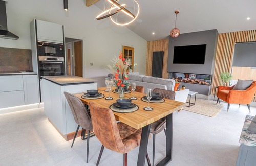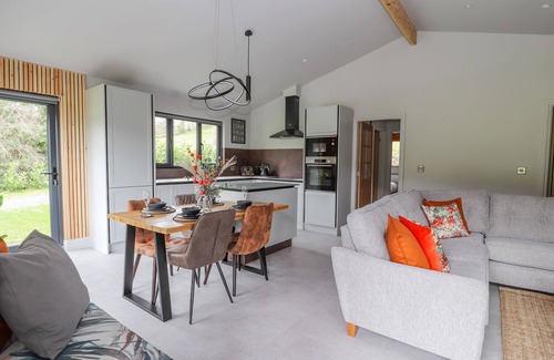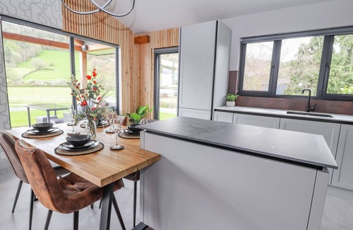 There is an open-plan living space with a kitchen with an electric oven, induction hob, microwave, fridge/freezer, dishwasher, dining seating for four and a sitting area with Smart TV and an electric flame-effect fire. The bedrooms consist of a king-size with an en-suite and TV and a twin bedroom with TV, along with a bathroom. A utility cupboard hosts a washer/dryer and outside there is a front garden with furniture, a hot tub and off-road parking for two cars. WiFi, fuel, power, bed linen and towels are all included in the price. Apologies, smoking is not permitted. A highchair and travel cot are available. Within 4.5 miles there is a shop and within 2.2 miles, a pub. For a stunning setting amid the countryside, choose Pool View. Please note: This property accepts a minimum of 3 night stays