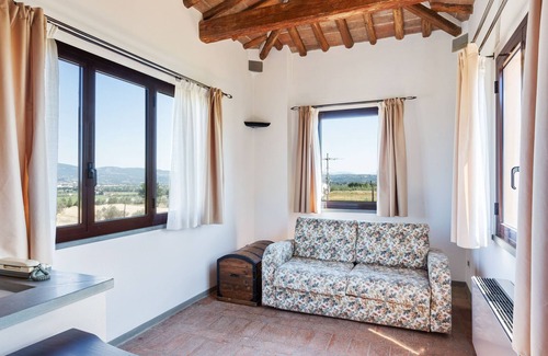 Ideal for families or groups, children can play safely on the lawn while adults unwind with local wine or a book. The villa’s open spaces invite gatherings and long conversations in the serene Tuscan countryside. Fully equipped interiors and comfortable bedrooms ensure a relaxing stay, combining style, charm, and practicality.