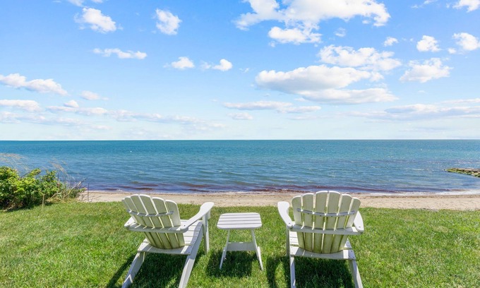 Popponesset-What more could you possibly want or need than this chic beachfront rental? Warm summer breezes come across the water and make you feel that you are sailing on a boat into paradise. Private beach and private stairway to a perfect, sandy beach. Patio overlooks the beach grass, sand and waterfront activities. Inside, everything is new, remodeled in 2021, down to the studs. Light bright, custom coastal colors throughout. Magazine ready Cape Cod decor. White kitchen and completely new baths. Walk out basement, with lower-level space for rainy days. Walk to the Community House, Deans Pond, Popponesset Marketplace and Popponesset Inn for great dining and entertainment.
