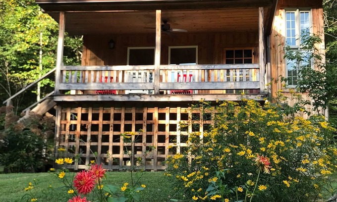 Perched on a hillside overlooking wildflower meadows and the rolling hollers of Kentucky, the Cottage with a View invites you into a world where peace comes easy and nature sings softly at your door. Part of the award-winning Snug Hollow Bed & Breakfast—celebrating over 25 years of heartfelt hospitality—this beloved cottage is nestled on 300 private acres with winding trails, wooded ridges, and the kind of quiet that soothes the soul.