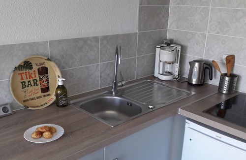Equipment: kitchenette, electric hob, microwave grill, electric BBQ, filter coffee maker, fan, vacuum cleaner, TV 81 cm. Terrace equipped with a table and 4 chairs. Banne awning to put you in the shade.