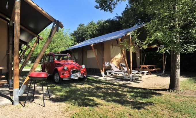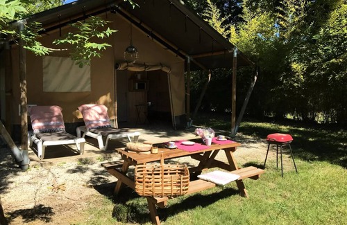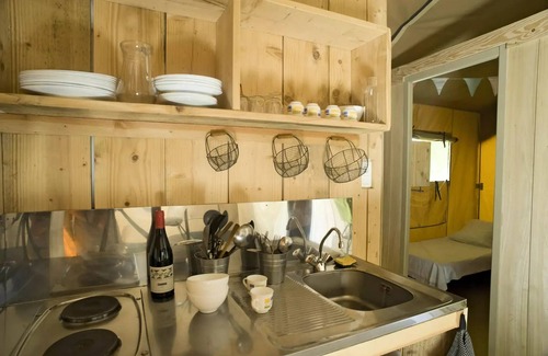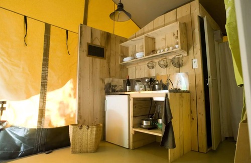 Accommodation: Immersion Nature guaranteed, a holiday in tent lodge safari is a life experience without any daily constraint, it is to enjoy 100% of all the moments and all the shows of nature without giving up comfort.From the covered terrace, direct access to the garden, with a view of the park where your children will gamble freely ...Inside, wooden kitchen, separate wooden rooms and cotton canvas with soft natural colors offer a total change of scenery for a 100% camping environment.Accommodation 100% family with 25 m2 interior, 2 bedrooms, kitchen and complete bathroom, you fully enjoy the garden thanks to its large door and direct access to the terrace, a full nature life in complete serenity...Carioles will be available at the entrance to the parking lot to allow you to carry your luggage to your accommodationAnimals are accepted under conditions outside July-August