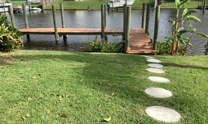 Beautiful 3 bedroom 2 bath river front home with private dock. deep water access to the ocean bring your boat. One block away from river front park with boat ramp and nature reserve, 10 min from Oxbow reserve. 15 min drive from the beach. Close to Met's spring training First Data Field , all shopping is close by. Boat trailer parking available, Beautifully landscaped yard with Palm trees, Tropical themed interior design.