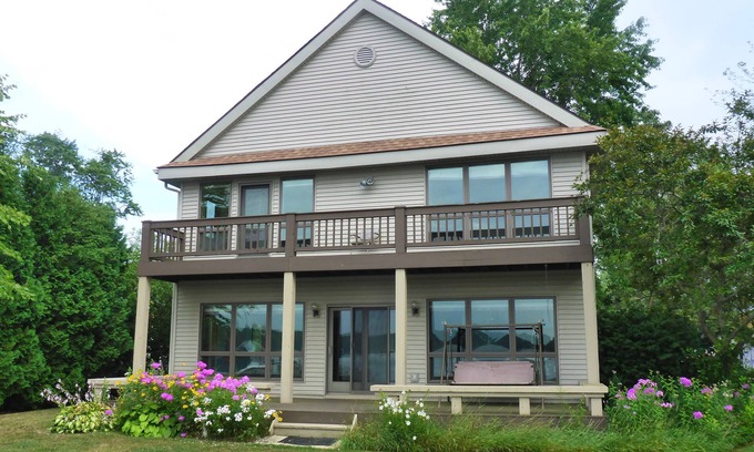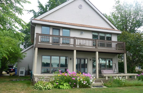 Full Width Deck with Benches and Balcony on Upper Level offer Fantastic Views of Beautiful Portage Lake. Shallow Swimming Area and 150 feet of aluminum dock with 2 jet ski lifts to hold your PWC and Boat Lift for your boat, Use of a very nice Pontoon Boat can be arranged only for our guests.